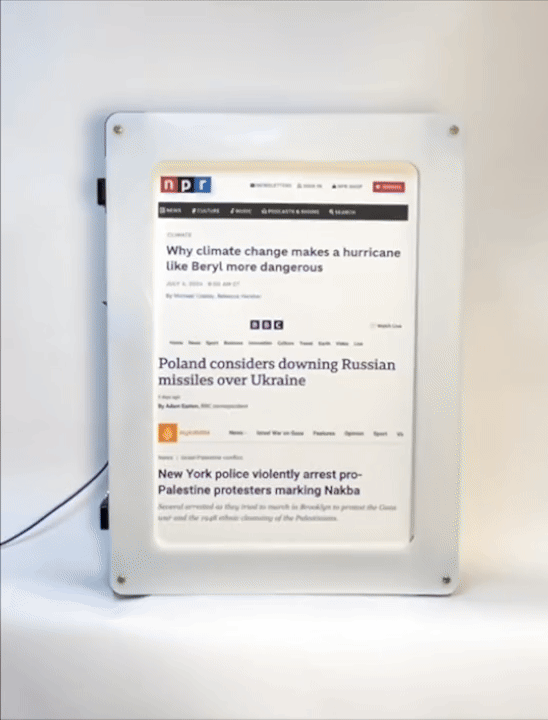 The display was intentinally low-fi, robust, and fully hands-free, designed to match the aesthetic constraints of the performance environment. It was powered by an off-the-shelf battery pack to avoid reliance on wall power and ensure seamless operation on stage.