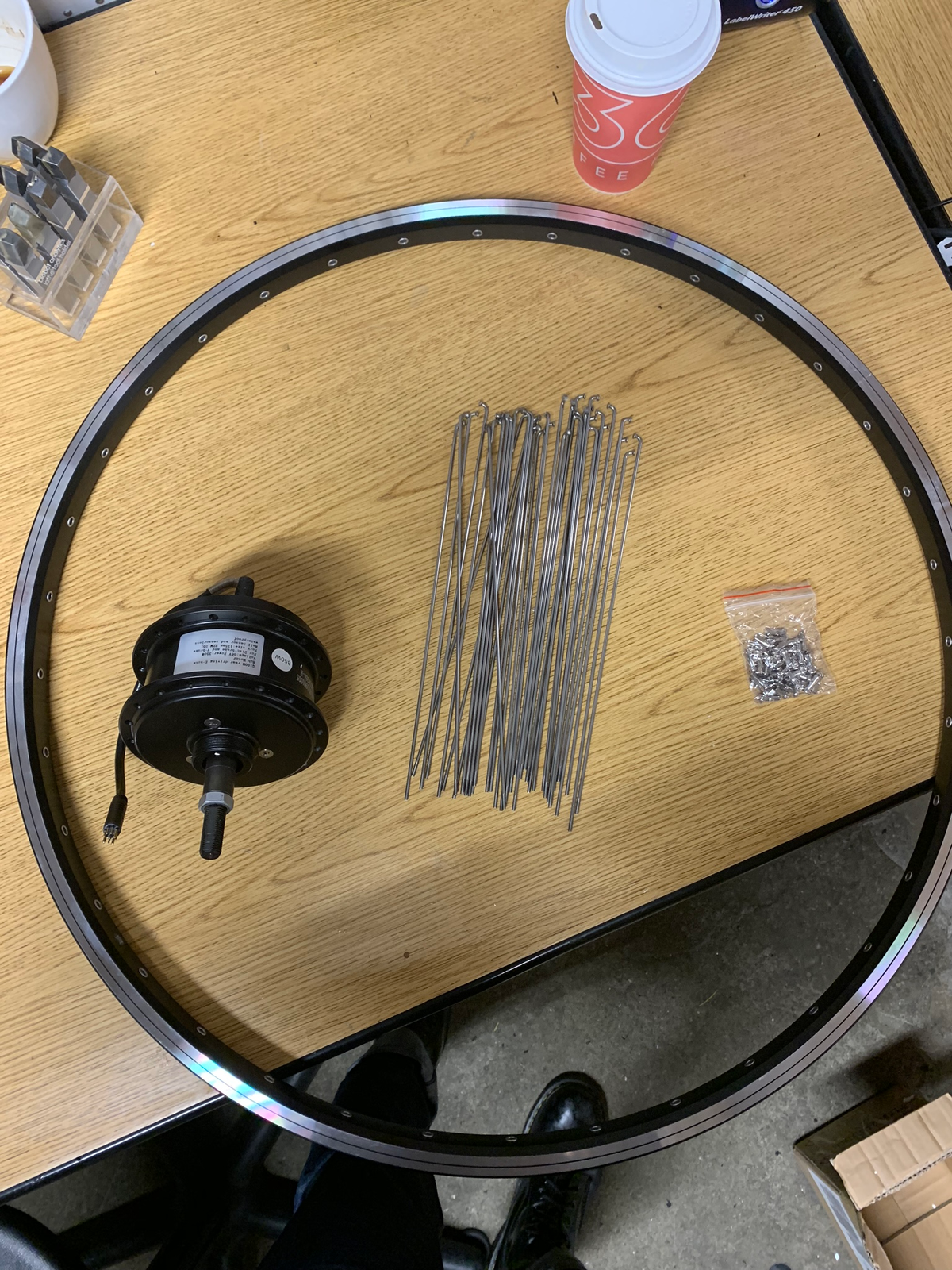 Fig. 1: Custom wheel built to house the smallest hub motor available on the market, rated for 350w.