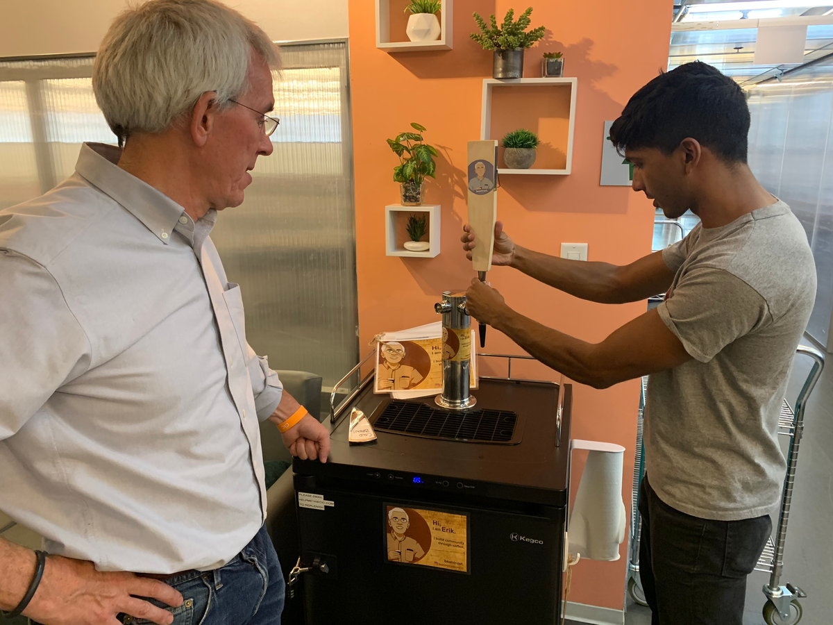 Fig. 2: First deployment with Erik! Tap Handle and keg in question, pictured in background. Located on the 14th Floor, Mass CIC